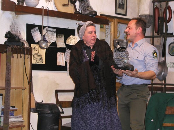 Weil die angrenzende Polizeistation auch in Mitleidenschaft gezogen wurde, hat man das Revier bei der Polizistenwitwe Krezentia Asslinger untergebracht.