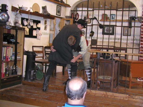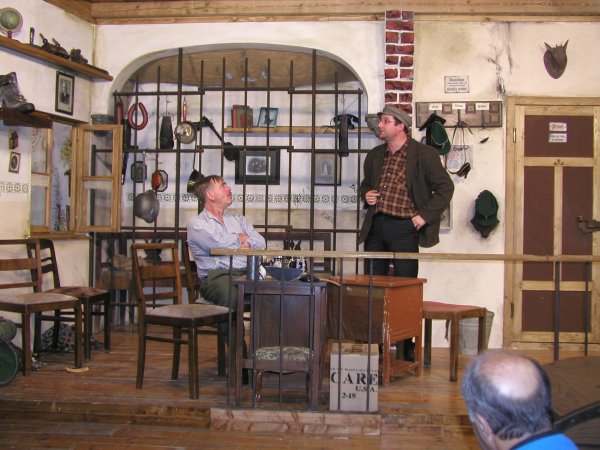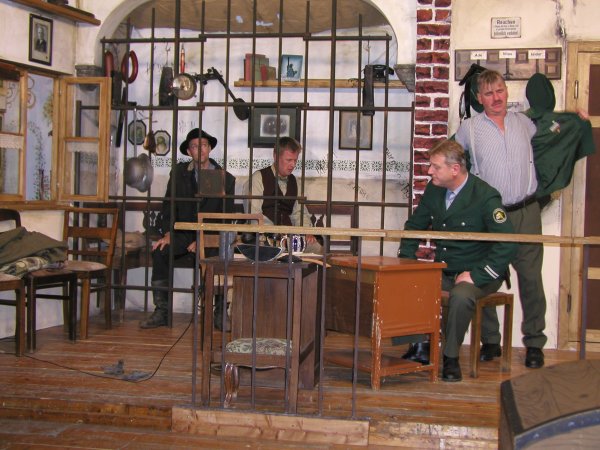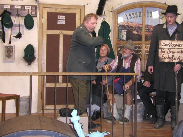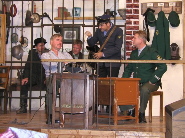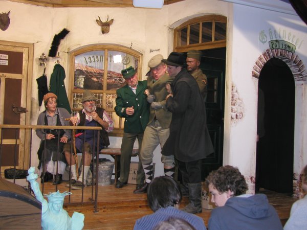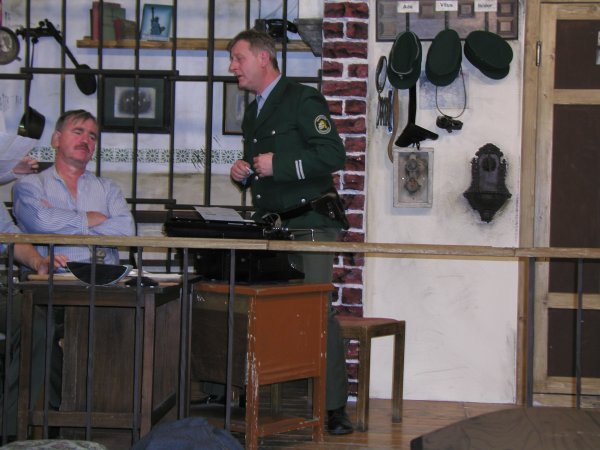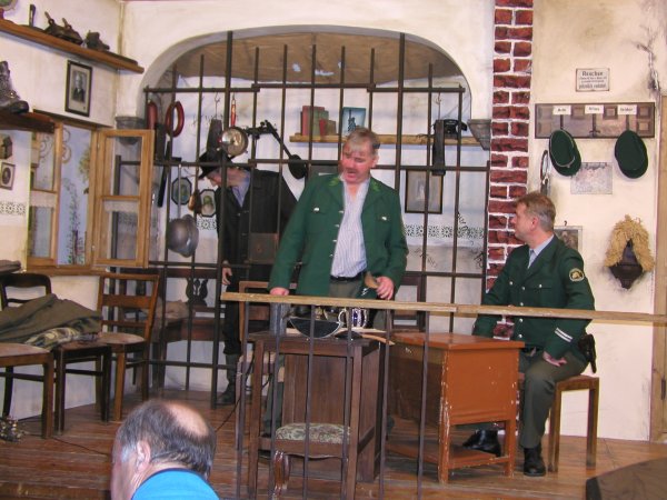Die Stube, in der sich jetzt das Amtszimmer mit einer kleinen Gefängniszelle befindet, wurde kurzum durch den Abriss einer Mauer mit den Laden der ehemaligen Gärtnerei verbunden. Für die drei Dorfpolizisten Ade, Vitus und Isidor lebt es sich nicht schlecht als Polizist, vor allem wenn man es nicht ganz so ernst nimmt mit "Recht und Gesetz".
