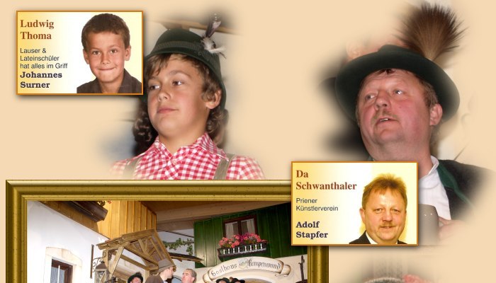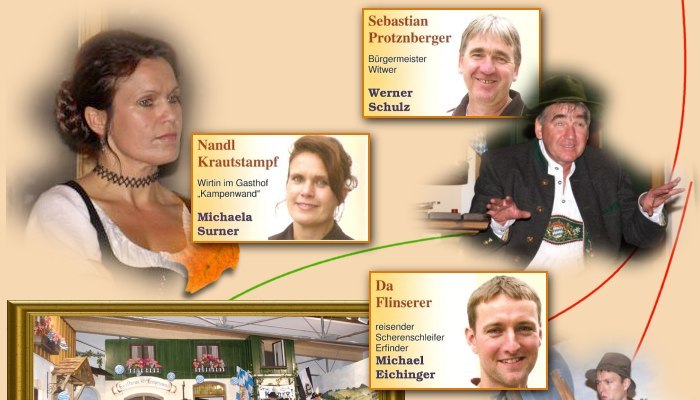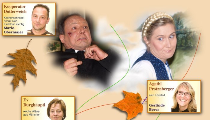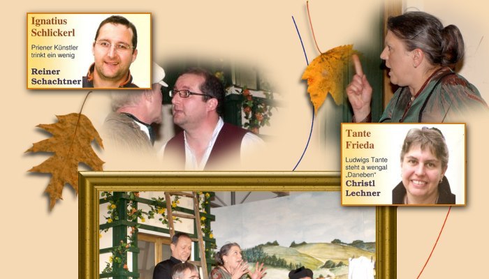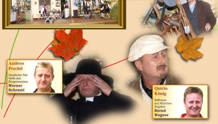 Doch leider geht nicht alles glatt: Der gewaltige „Vorbau“ der neuen weiblichen Statue bewegt die Gemüter der Priener, allen voran des aus dem Frankenland zuagroasten Kooperators Dotterweich (Mario Obermaier) und der schrullig-nervigen „Tante Frieda“ (Christl Lechner). Geistlicher Rat Prechtl (Werner Schraml), die schneidige Wirtin Nandl Krautstampf (Michala Surner) und der eher feuchte Priener Künstler Ignatius Schlickerl (Reiner Schachtner) haben alle Hände voll zu tun, das wirre Geschehen in Prien nicht ausufern zu lassen. Das ist nicht leicht, zumal das Geschehen auch von den Streichen des jungen Ludwig (Doppelbesetzung: Johannes Surner und Emanuel Lehner) gesteuert wird. Natürlich ist auch noch die fesche Tochter des Bürgermeisters, Agath Protzenberger (Gerlinde Berer) auf dem falschen Weg und hat sich in den arroganten Bildhauer Quirin König (Bernd Wagner) aus München verschossen – wo doch der einfallsreiche Scherenschleifer „Flinserer“ (Michael Eichinger) viel besser passen würde. Welche Rolle die geheimnisvolle Witwe Ev Burghäuptl (Rosi Bauer) und die drei einheimischen Männer „Schwanthaler“ (Adolf Stapfer), „Ganslmeier“ (Tom Berer) und „Antnberger“ (Hans Wimmer) spielen und wie die Geschichte ausgehen wird, ist ab dem 29. Oktober 2010 (19.30 Uhr) in 8 Vorstellungen im Mehrzwecksaal der Volksschule Triftern zu sehen.