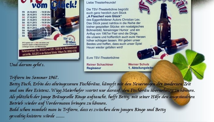 Die TSV-Theaterbühne begrüßt euch ganz herzlich zum Stück "A Flascherl von Glück" des Eggenfeldener Autors Christian Lex.