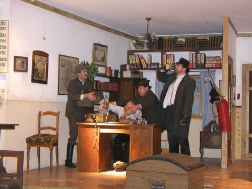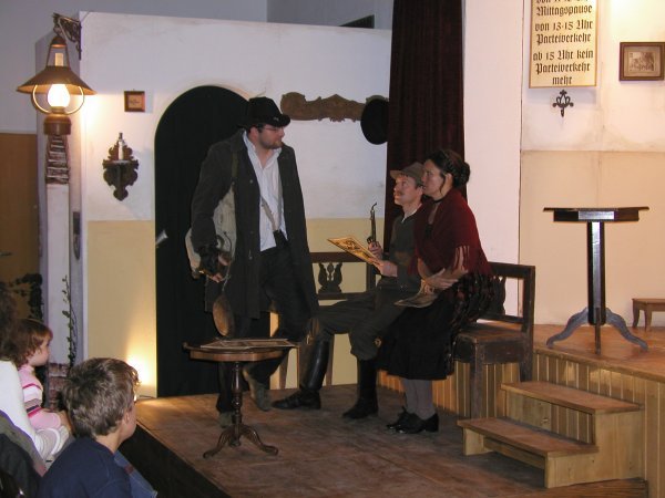 Zum Stück: Unsere Wahl-Lump'n Geschichte spielt lange vor dem Krieg. Sie ist frei erfunden. Ähnlichkeiten und Übereinstimmungen wären also reiner Zufall. Wäre ja auch schlimm, wenn's damals so zugegangen wäre. Denn seinerzeit regierte im Gemeindeamt neben dem alteingessenen Bürgermeister in erster Linie die Gemütlichkeit. Bis das Unglück in Form eines gescheiten Preußen kam, der - wie fast alle seiner Art - alles besser wusste. Das wäre ja noch zu verkraften. Doch ausgerechnet jetzt stand die Bürgermeisterwahl vor der Tür ..................