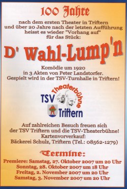 100 Jahre nach dem ersten Theater in Triftern und über 20 Jahre nach der letzten Aufführung, hieß es wieder "Vorhang auf" für das Stück: D'Wahllump'n.