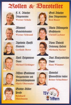 Rosi Bauer, Gerlinde Berer, Michael Eichinger, Christl Lechner, Silvia Lindinger, Reinhard Muselmann, Mario Obermaier, Ute Pilstl, Reiner Schachtner, Werner Schraml, Werner Schulz, Michaela Surner, Hans Wimmer